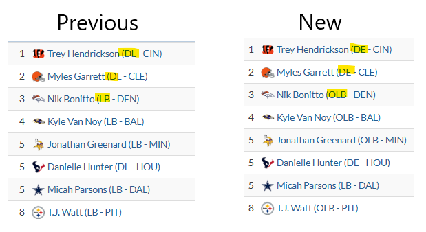 Detailed Positions for OL, DL, DBs