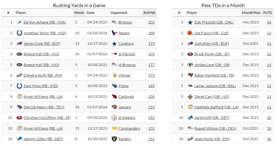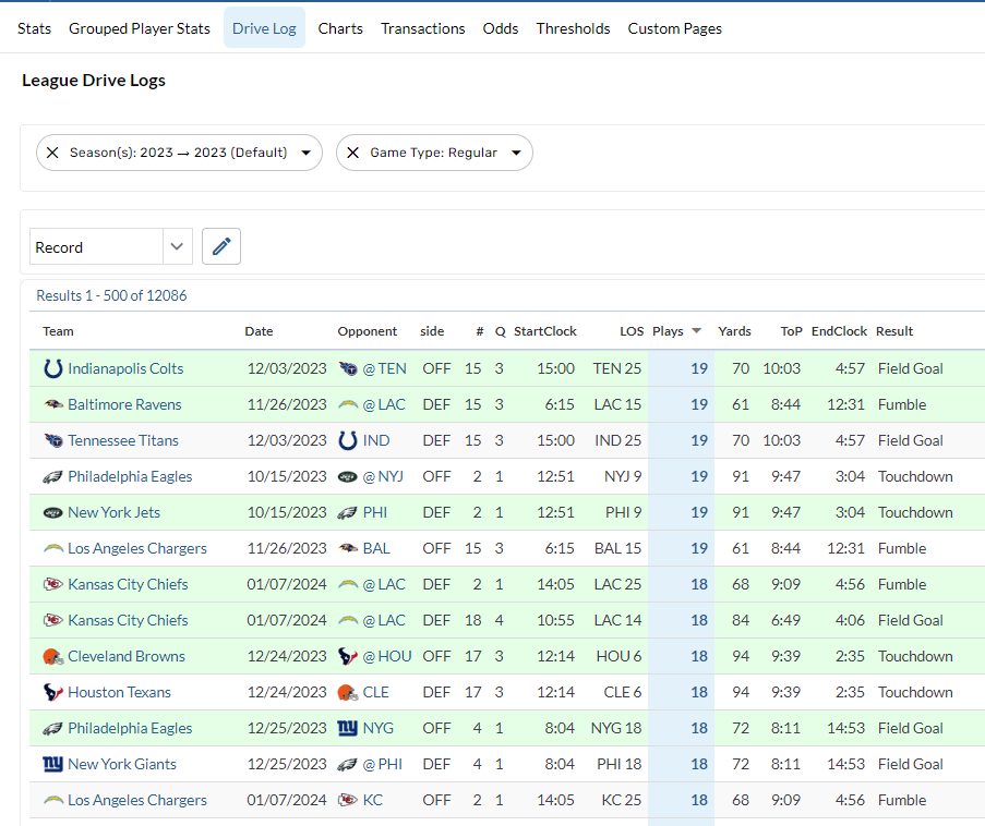 This allows users to answer questions like which teams had the longest drives, most passing yards, etc.